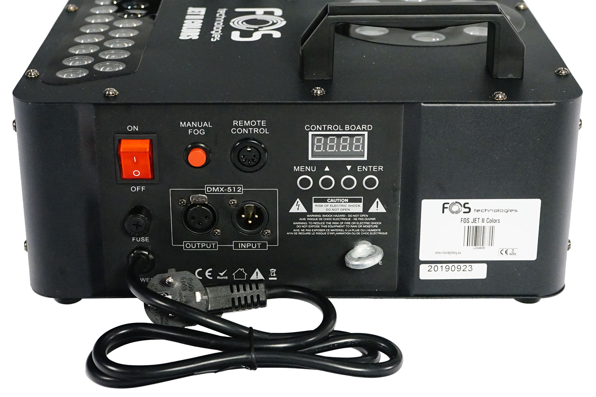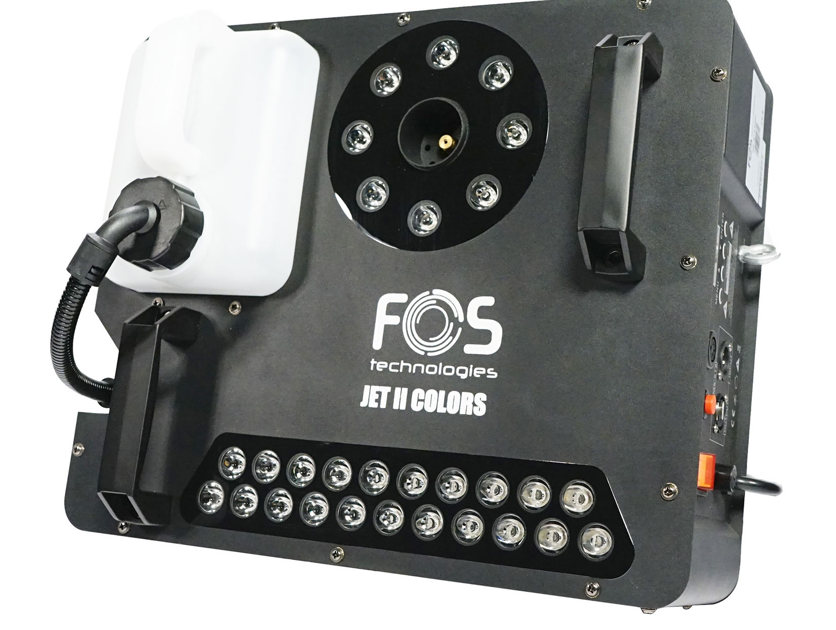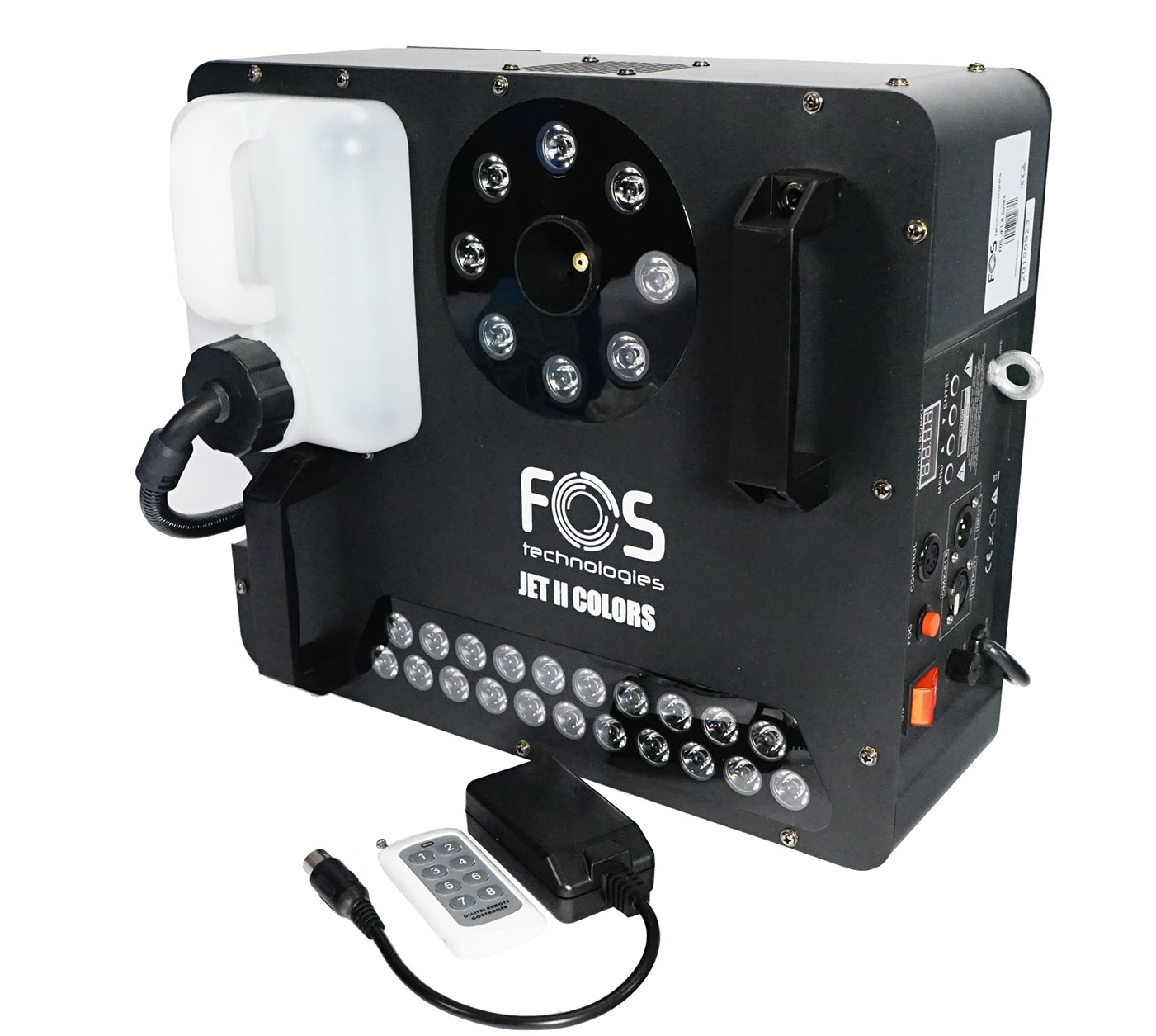 Profesionálny 1500W dymostroj s CO2 efektom. Unikátny dizajn, 2-farebný tryskový efekt, 29 x9W RGB LED rozdelených do dvoch sekcií. Ovládanie: DMX 9 kanálov, bezdrôtový ovládač, spotreba kvapaliny 6,3 min/l.