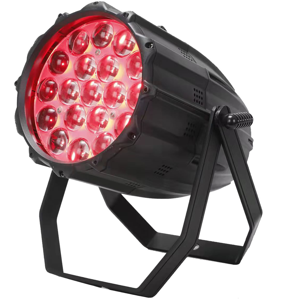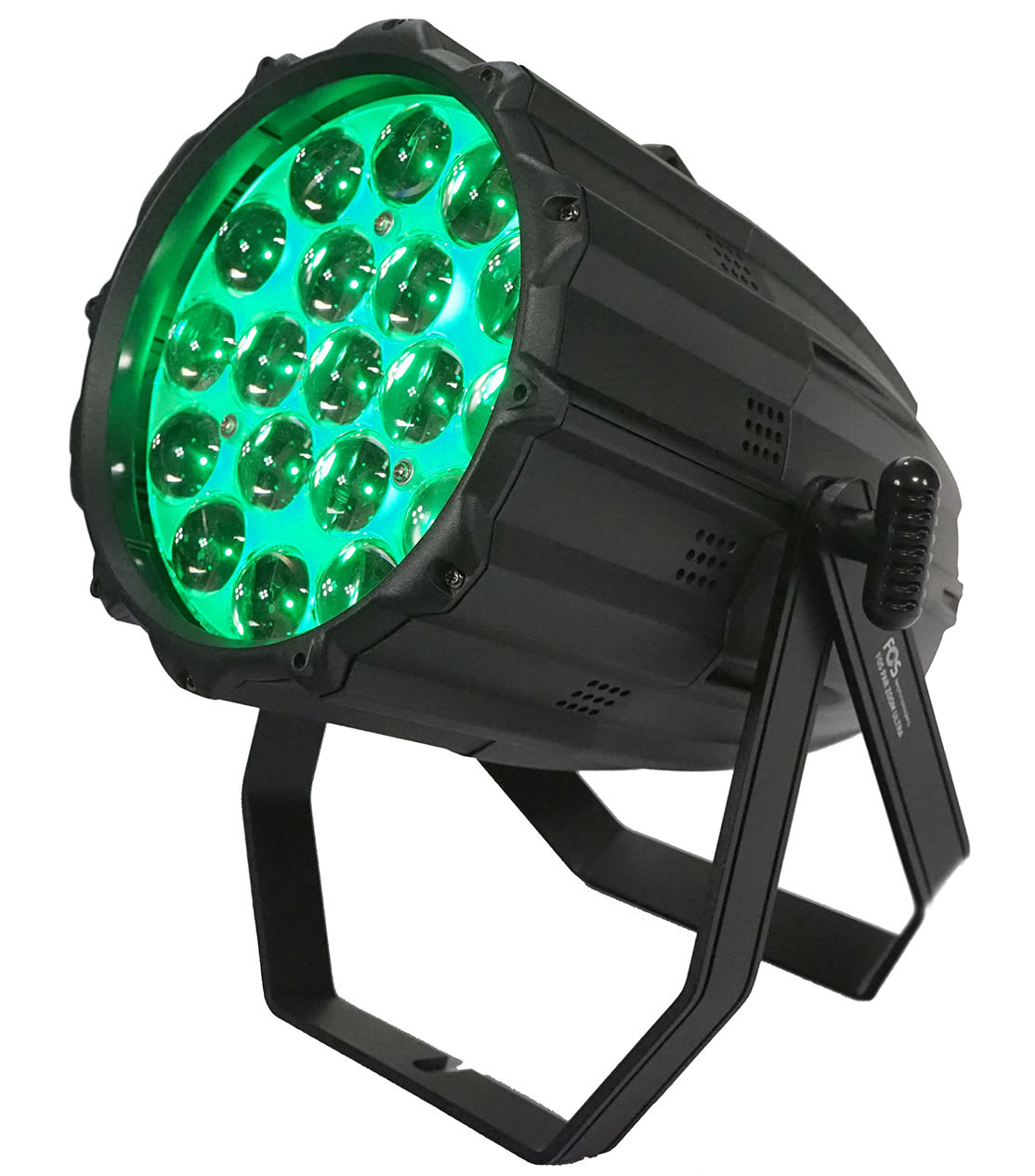 Profesionálny 285W RGBW (4v1) LED reflektor s možnosťou plynulého nastavenia farby. 0-100% lineárny motorizovaný stmievač, 10 DMX kanálov, 4 tlačidlový LED displej, hliníkové puzdro, uhol lúča10 - 60°. Ovládanie buď manuálne alebo DMX.