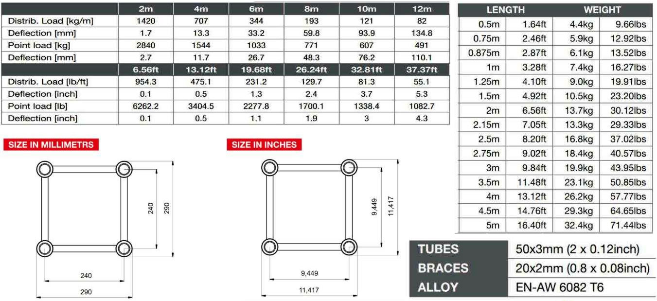 Rovný kus QUATRO 290 FC v dĺžke 3 m, hrubé rúrky, väčšia záťaž.