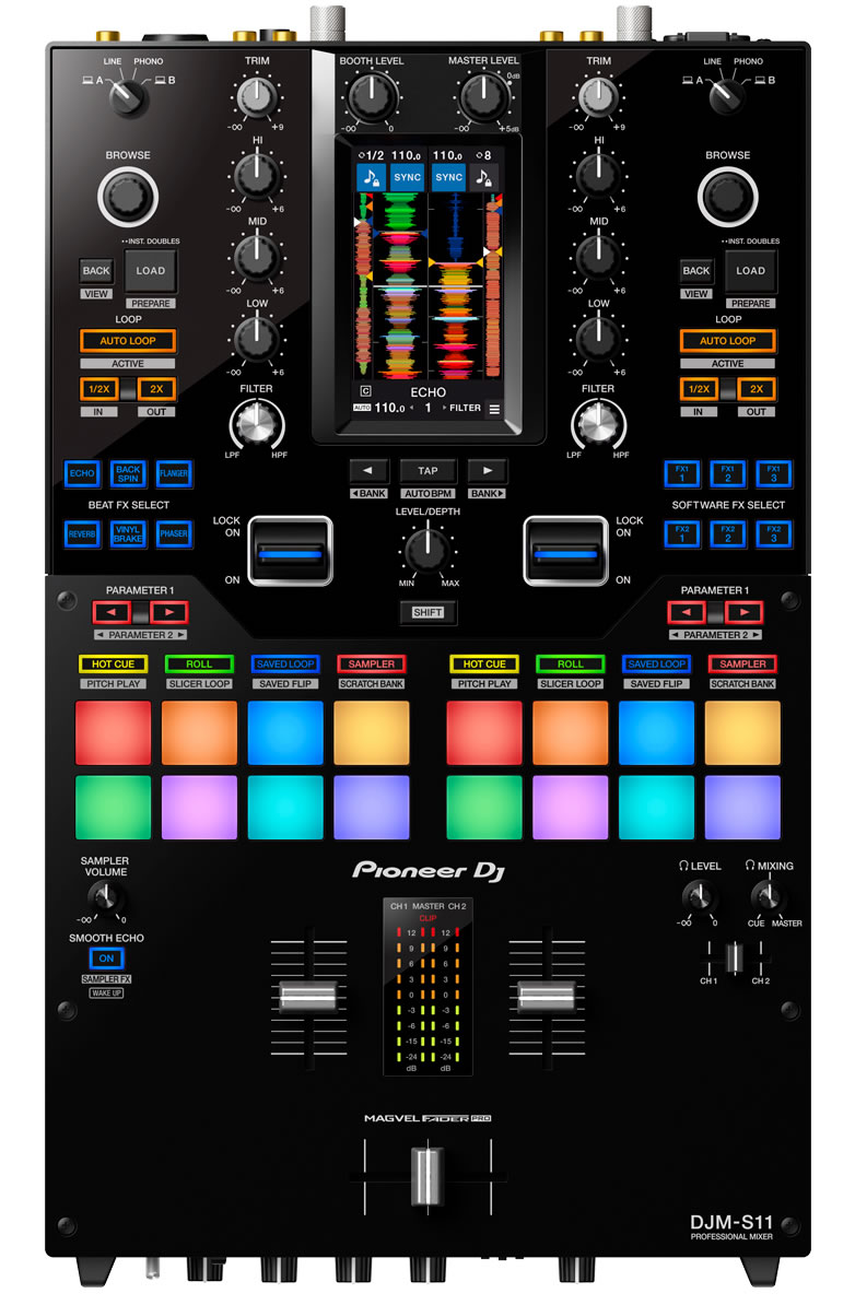 Pod maskou DJM-S11 sa nachádza množstvo prémiových zvukových technológií, ktoré zabezpečia všetko potrebné na to, aby bol váš mix počuť pekne nahlas a zreteľne bez akýchkoľvek skreslení. S 64-bitovým mixovaním v štúdiovej kvalite a vysoko kvalitným DA prevodníkom zdedil DJM-S11 všetko potrebné z vlajkovej lode DJM-900NXS2.